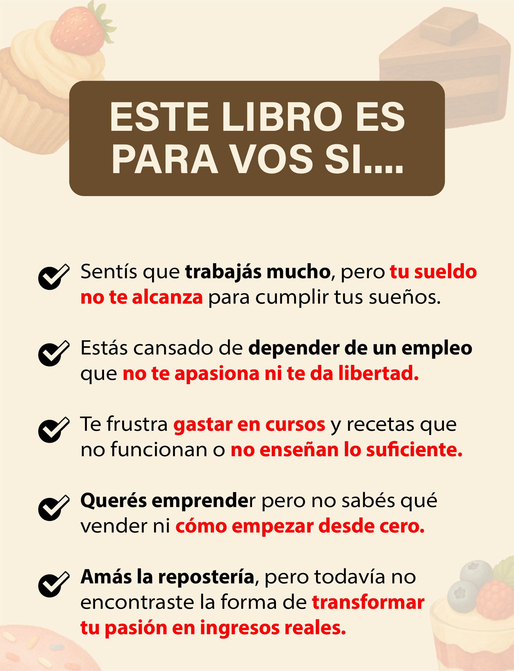 Sí. El contenido combina recetas creativas con consejos prácticos para que puedas transformar tu pasión en un emprendimiento rentable desde casa.